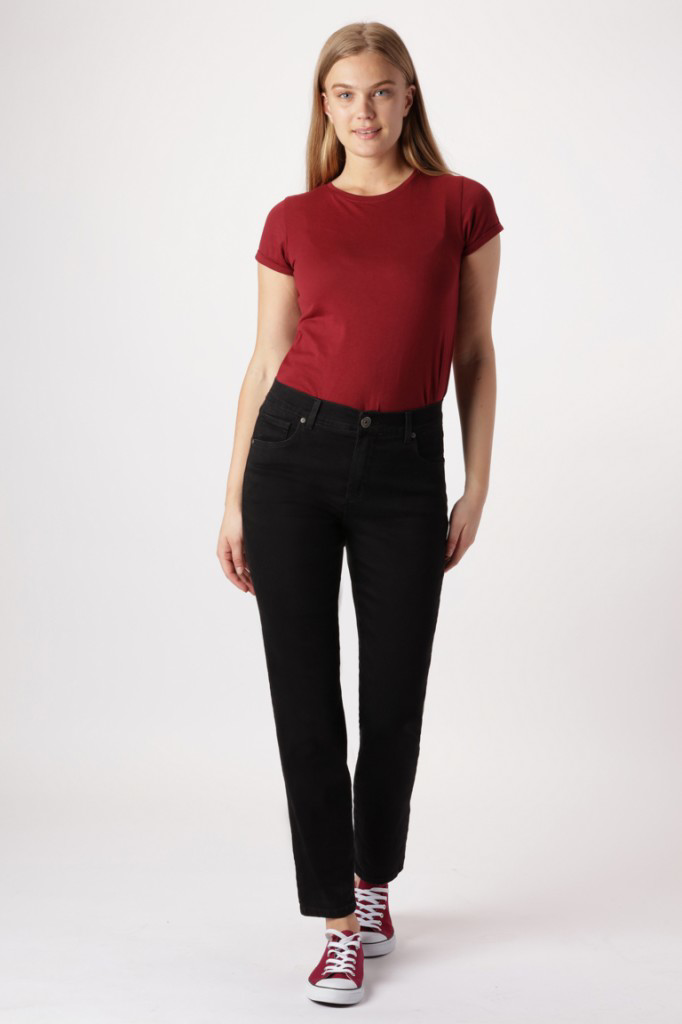 Bløde og stretchy 5 lommet Marta jeans. Jeansene har en melem høj talje og er smal i benene. De lukkes foran med 5 knapper. God og komfortabel pasform.