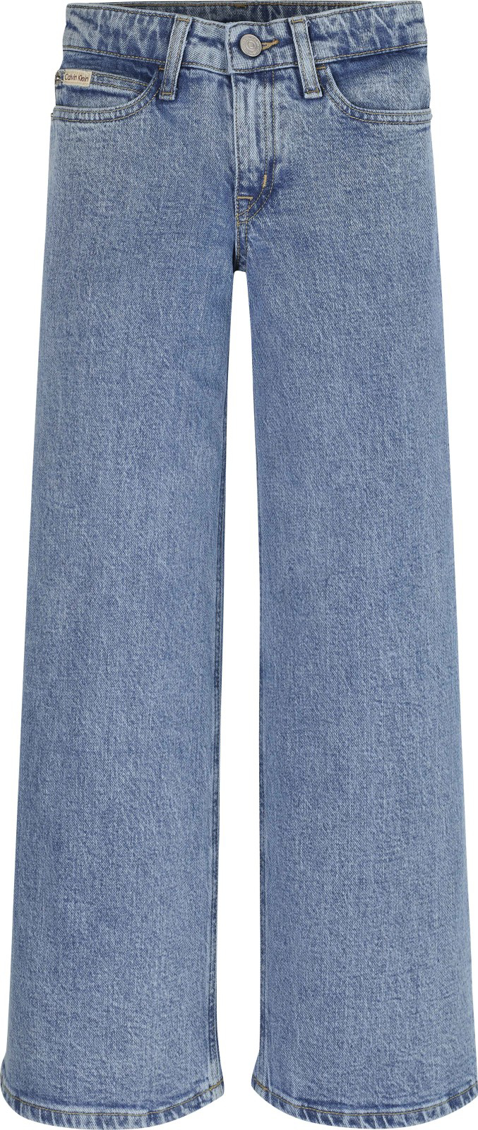 Denim jeans med stretch, vide ben, forlommer og baglommer. Lynlås gylp og knap foran, og justerbar elastik i linningen. Normal pasform, dog lidt lille i strørrelsen og vide ben med opbrat.