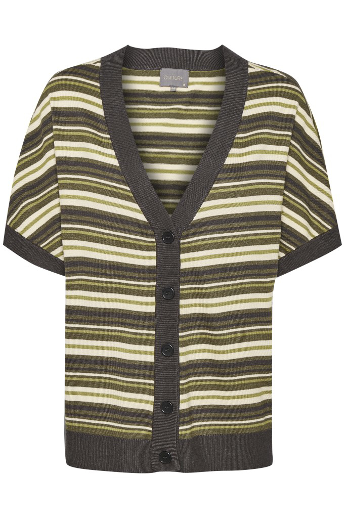Super cool Culture vest med let indsnævert kant nederst. Vesten har en fin rund hals og lukkes med lynlås. Den har som en lækker detalje elastik i taljen, så det er muligt at puffe den op.