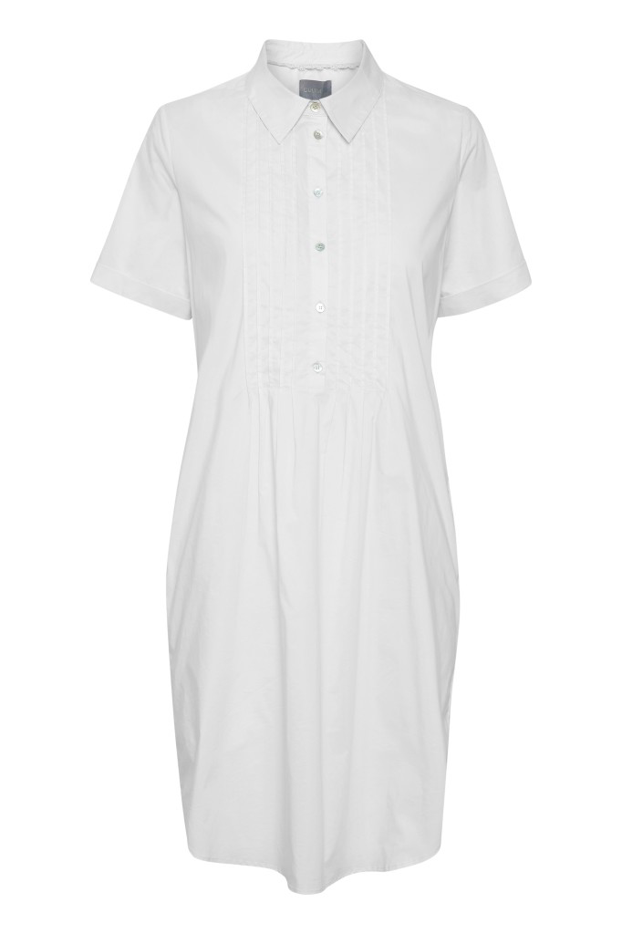 Lækker ensfarvet kjole fra Culture i den velkendte Antoinett pasform. Kjolen er knælang med 3/4 lange ærmer med ribkant. Fin v- udskæring med en bred stolpelukning i halsen og et diskret puf på skuldren. Kjolen har lommer i siden.