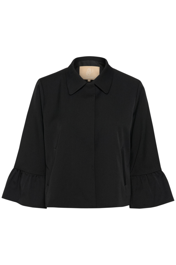 Culture står bag denne fine i klokkefacon. Jakken har en kort længde og 3/4 lange ærmer med en flot bred blæsekant. De er skjulte trykknakker foran, stiklommer og en flot krave.