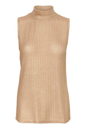 Super fin Cuture bluse i et klassisk look. Blusen er ærmeløs og har en høj krave som lukkes bagpå med 2 små knapper. Den har etr loose fit og er perfekt under fx. en blazer da den ikke fylder noget.
