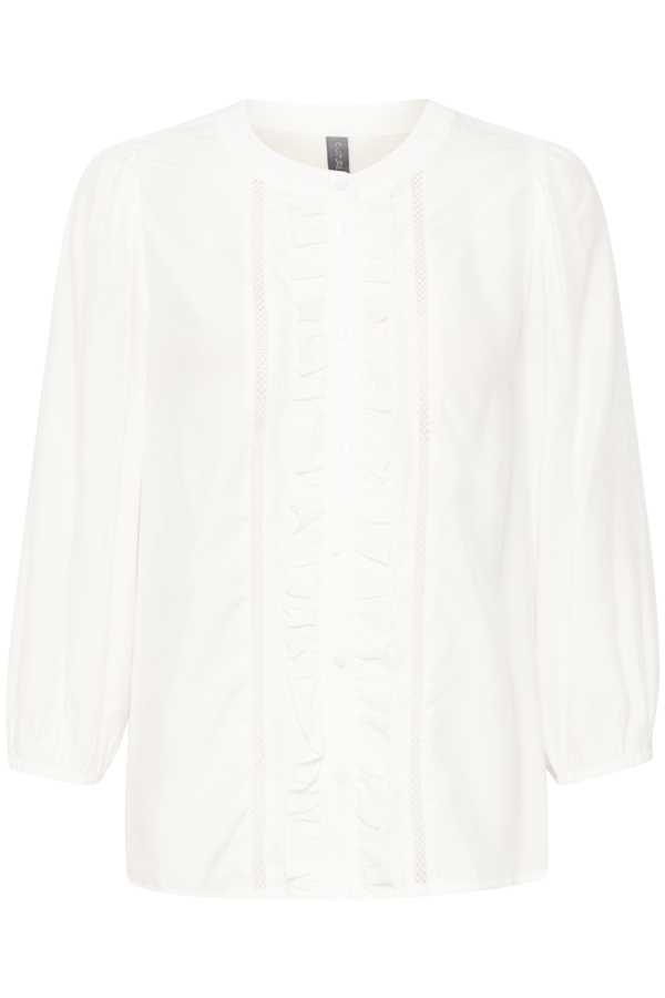 Sød og feminin Culture bluse med bindebånd foran. Blusen har 3/4 lange ærmer som afsluttes med en smal elastikkant. På fronten er en fin hul bort samt et broderet mønster.
