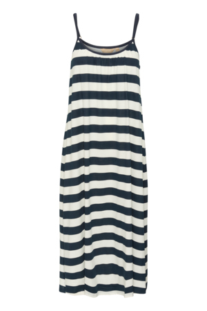 Kjole i afslappet pasform, perfekt til både hverdag og festlige lejligheder. Kjolen har midi længde og elegante 3/4 ærmer. Fremstillet af 100% viskose, der giver en behagelig og holdbar kvalitet.