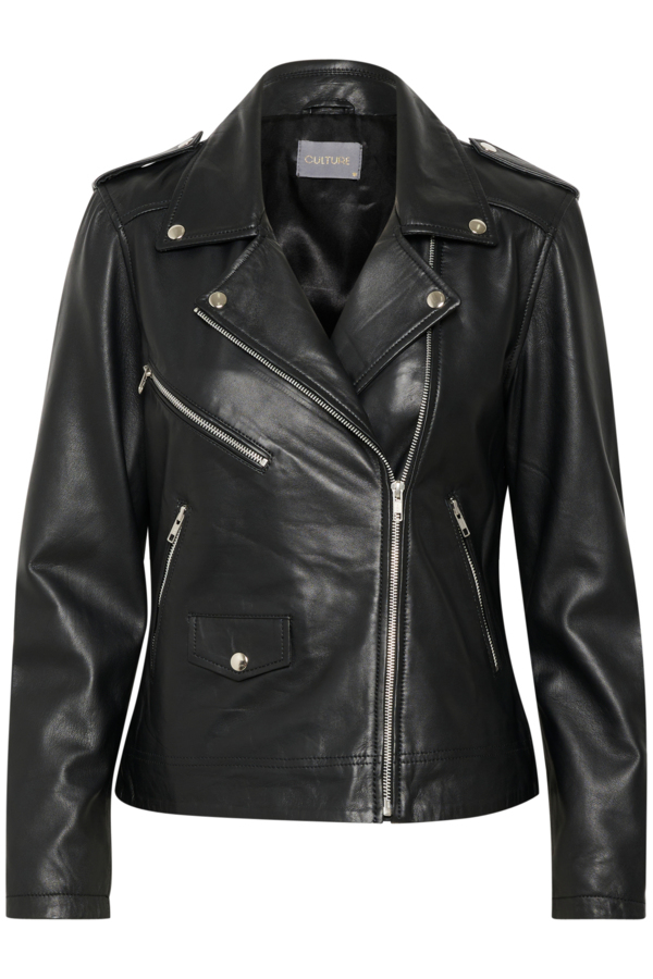 Culture står bag denne fine i klokkefacon. Jakken har en kort længde og 3/4 lange ærmer med en flot bred blæsekant. De er skjulte trykknakker foran, stiklommer og en flot krave.