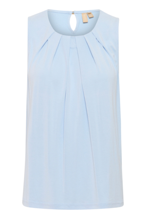 Super fin Cuture bluse i et klassisk look. Blusen er ærmeløs og har en høj krave som lukkes bagpå med 2 små knapper. Den har etr loose fit og er perfekt under fx. en blazer da den ikke fylder noget.