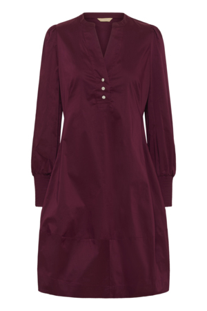 Lækker ensfarvet kjole fra Culture i den velkendte Antoinett pasform. Kjolen er knælang med 3/4 lange ærmer med ribkant. Fin v- udskæring med en bred stolpelukning i halsen og et diskret puf på skuldren. Kjolen har lommer i siden.