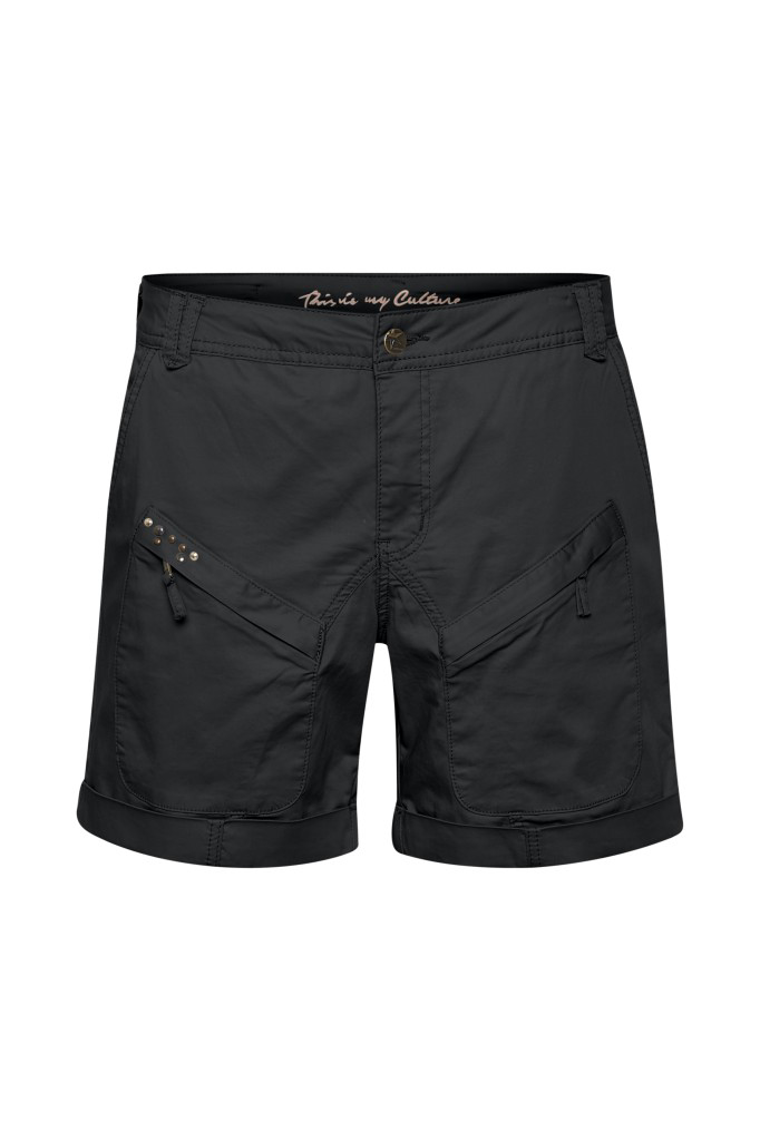 Super smarte og treny shorts fra Culture. Shortsene har lange ben og en skøn løs og rummelig pasform. De har elastik i taljen bagpå, fast llinning foran og skrålommer i siden. Stoffet har en let vævet struktur. Style dem med lange støvler et par smarte strømper og din ynglings strik for et cool afslappet look.