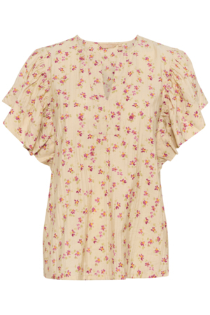 Smuk viskose bluse fra Culture i skønne forårs nunancer. Blusen et kort løst ærme med flæsedetalje, en fin v-udskæring og en løs pasform. Style den til shorts, hørbukser og jeans alt efter lejligheden.