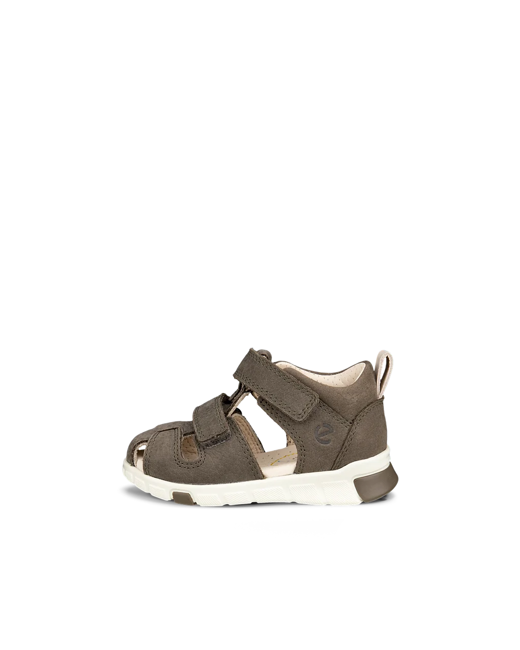 ECCO MINI STRIDE børnesandal er en klassisk, flettet sandal med lukket tå og hæl, som er skabt til at give små fødder komfort hele dagen. Den lukkede tå beskytter, mens hælkappen giver god støtte. Overdelen er udført i slidstærkt læder og læderforet giver en rar fornemmelse. To velcrobånd gør det nemt for små fingre at justere sandalen for perfekt pasform. De skridfaste letvægts-ydersåler i PU med giver masser af affjedring og komfort, mens TPU-indlæg gør designet ekstra farvestrålende. I sandaler med lukket tå anbefaler vi et voksetillæg på 1-1,5 cm.