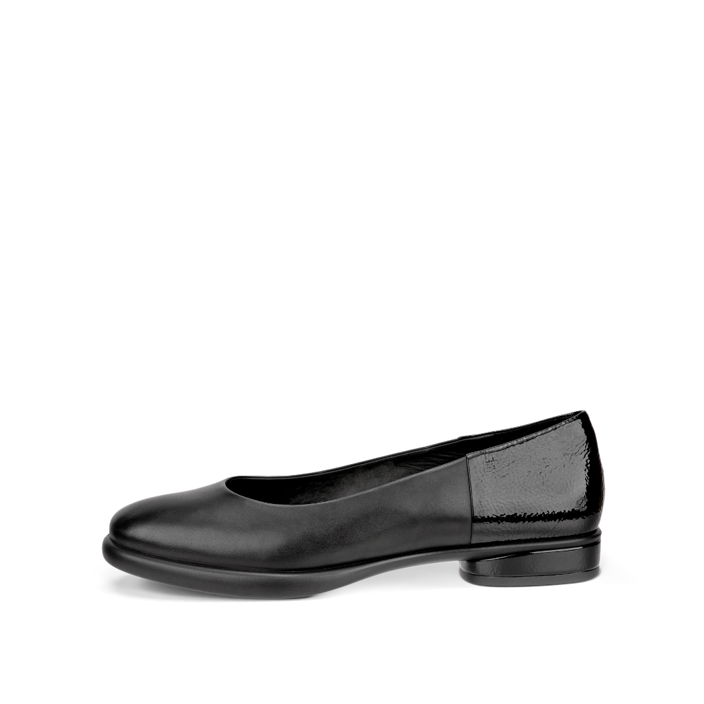 Flot Ecco slip on sko i sort med en stilfuld kilehæl. Den er især perfekt til kontoret og i smørblødt rigt læder skjuler også et væld af komfortfunktioner indeni, inklusive det unikke ECCO Comfort Fibre System™ for friskhed hele dagen.
