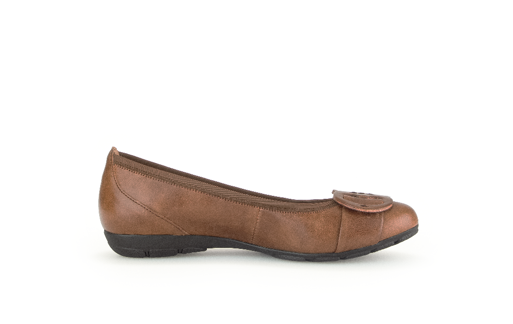 Super fine Gabor sko med en god bund. Den er i en flot mørk camel med et smart spænde foran.
