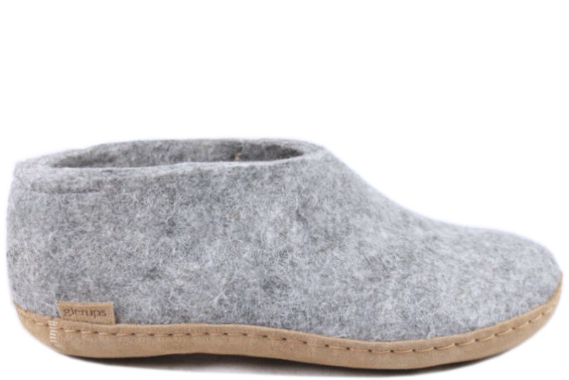 Filtsko af 100% ren naturlig uld i klassikerfarven koksgrå med en sål af semi-vegetabilsk garvet kalveskind. Hjemmeskoens pasform følger fodens konturer og søger for, at den forbliver på foden. Skoen er smidig, og uldens egenskab til at optage fugt bevirker, at fødderne altid føles varme og tørre.