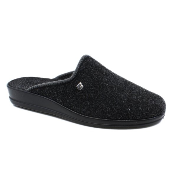 Let og varm hjemmesko i filt i en flot grå mørk antracit farve. Den er med en kraftig sål, så den kan bruges udenfor til at tømme posten m.m. Modellen er lavet af et lækkert filt materiale, som sørger for at holde fødderne varme hele dagen.