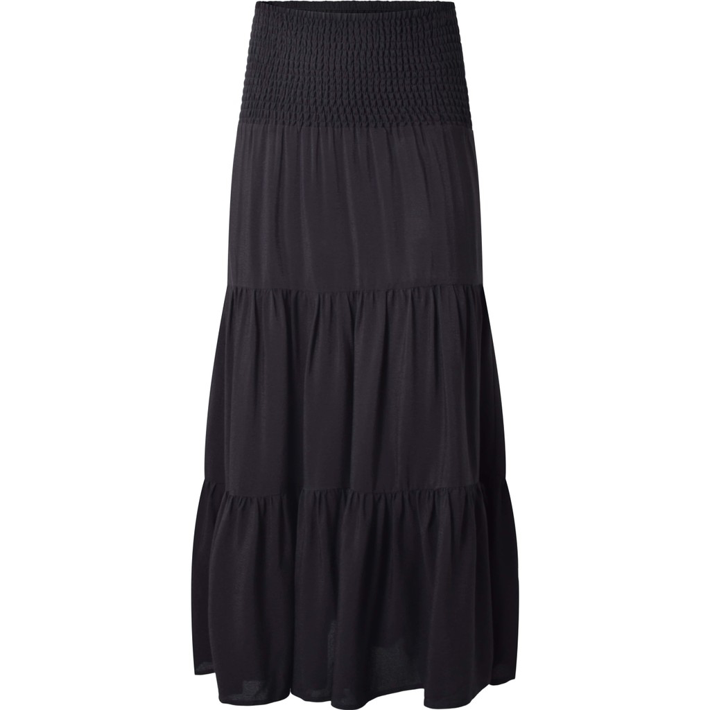 Super skøn jeans nederdel fra Hound i stretch denim med bæltestropper. Nederdelen har metal knap og lynlås foran, og justerbar elastik i linningen. Normal pasform og kort længde.