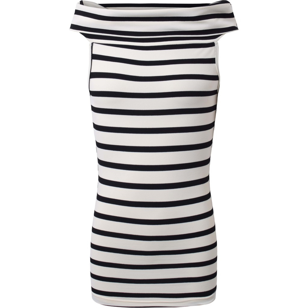Blusen har en oval udskæring på fronten over brystet og er fremstillet i en blød og strækbar bomuldskvalitet.
