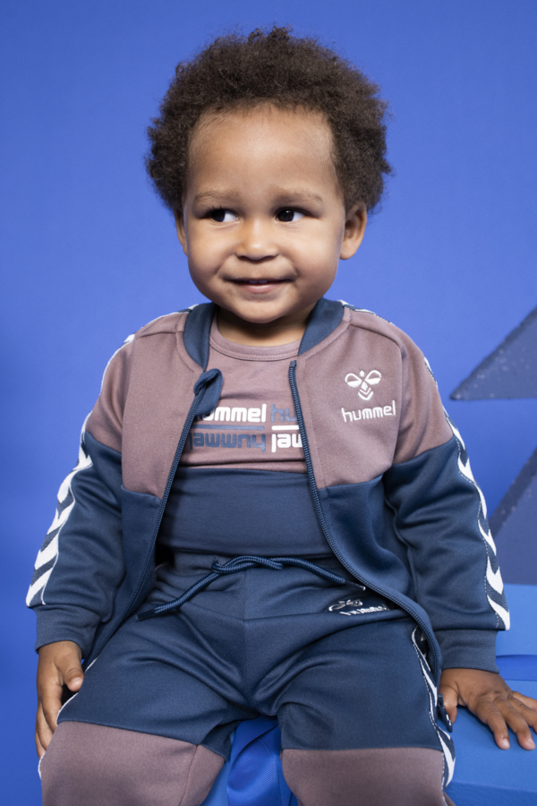Super fin Hummel body til dreng i blå, og til pige i lyserød. Den er med lange ærmer, O-hals og med logo på front. Den har praktiske trykknapper på højre skulder og mellem benene.