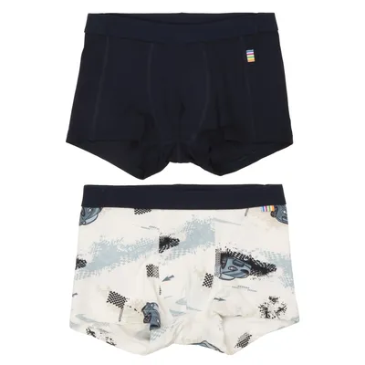 Forny dit barns basisgarderobe med blødt og komfortabelt undertøj til enhver alder. Super fint 2 pk tanktop til dreng. Den ene med dino print, den anden ensfarvet.