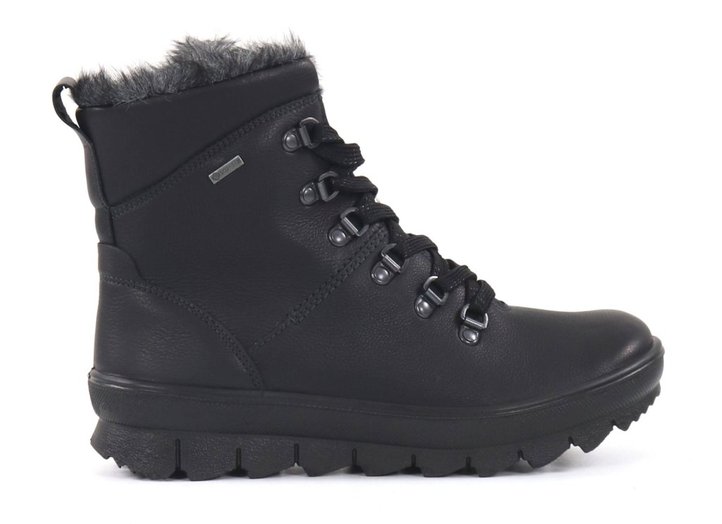 Smart damestøvle fra ECCO, som er designet med en robust og praktisk tilgang, perfekt til efterårs- og vinterbrug. Støvlen har sort læder og er udstyret med snøre foran for en justerbar pasform, samt en tyk, slidstærk sål med godt greb.