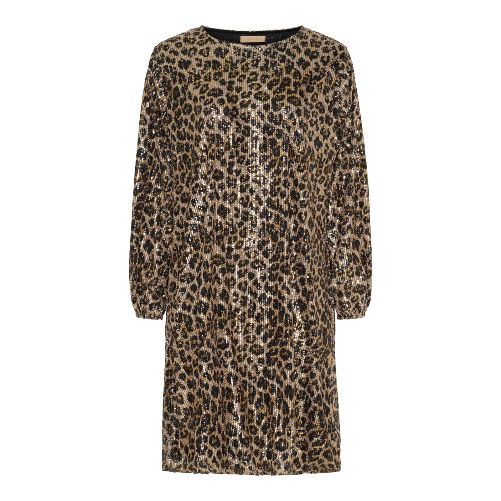 Fineste palliet kjole med et flot leopard mønster. Kjolen er fra Marta og har en knælang længde. Der er lange ærmer og en flot rund halsudskæring. Kjolen er foret så du ikke kan mærke pallietter på uden.