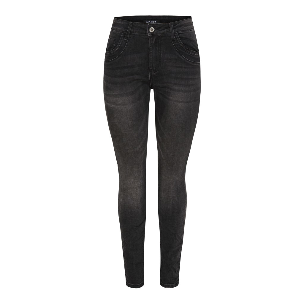 Bløde og stretchy 5 lommet Marta jeans. Jeansene har en melem høj talje og er smal i benene. De lukkes foran med 5 knapper. God og komfortabel pasform.