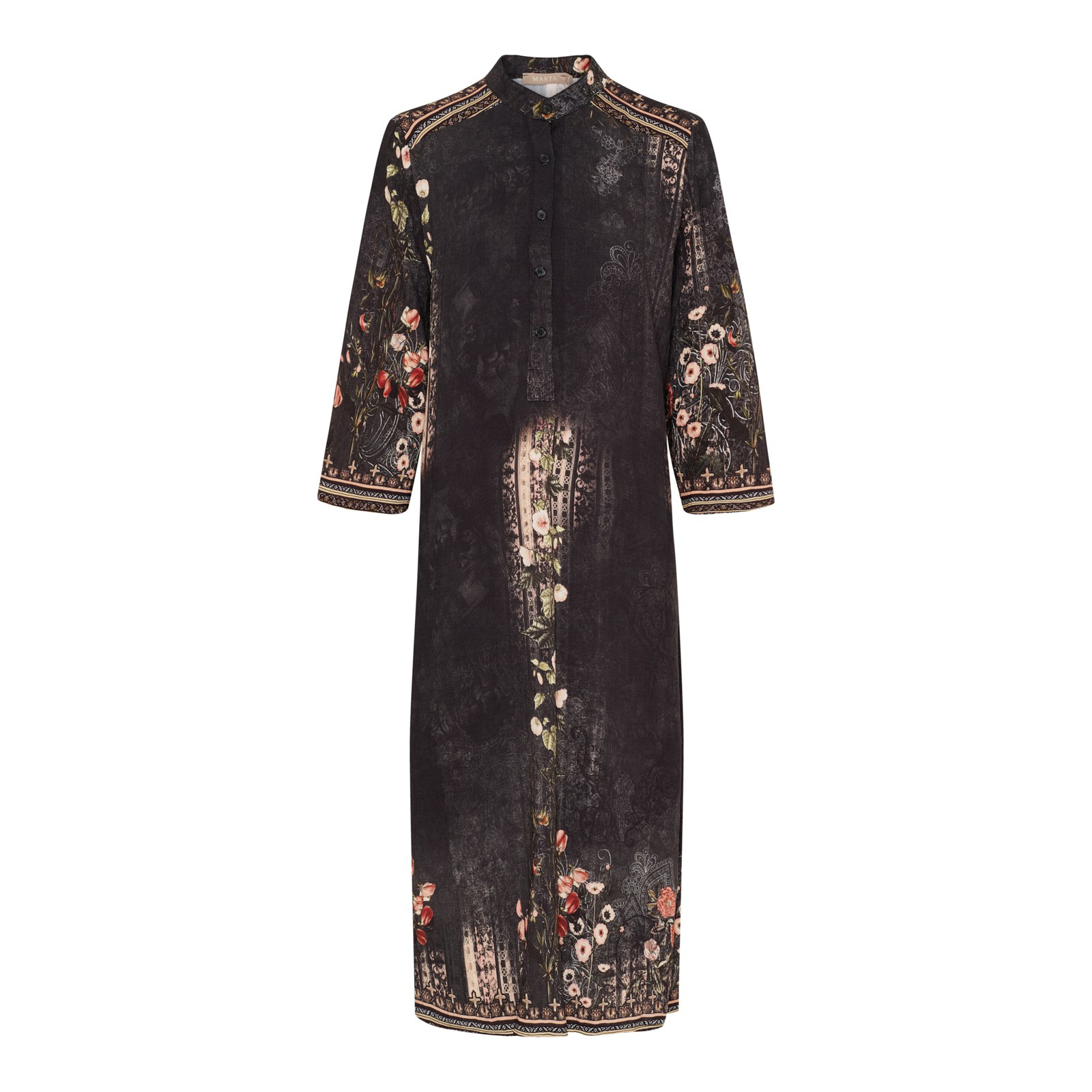 Kjole i afslappet pasform, perfekt til både hverdag og festlige lejligheder. Kjolen har midi længde og elegante 3/4 ærmer. Fremstillet af 100% viskose, der giver en behagelig og holdbar kvalitet.