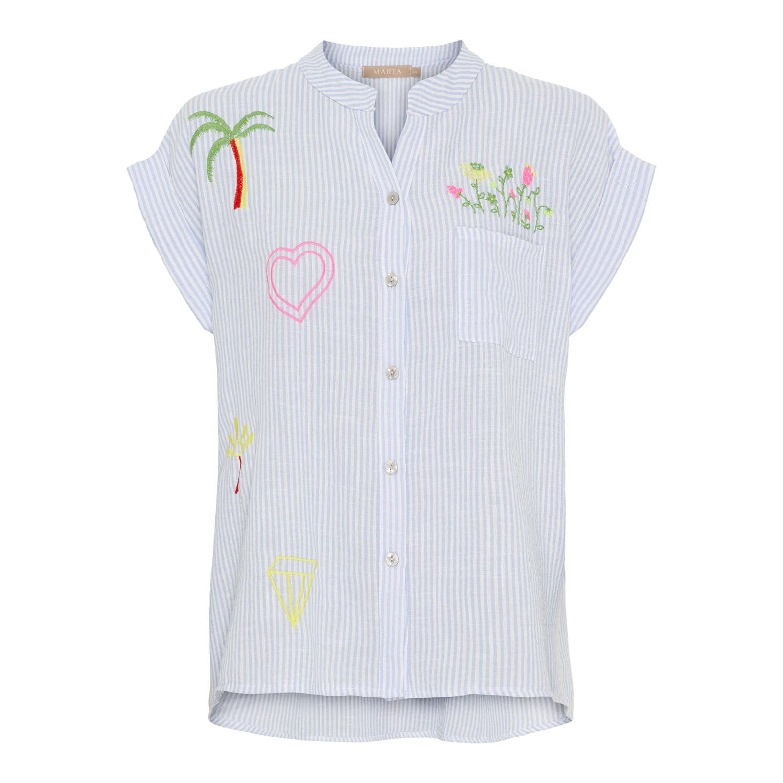Smuk viskose bluse fra Culture i skønne forårs nunancer. Blusen et kort løst ærme med flæsedetalje, en fin v-udskæring og en løs pasform. Style den til shorts, hørbukser og jeans alt efter lejligheden.