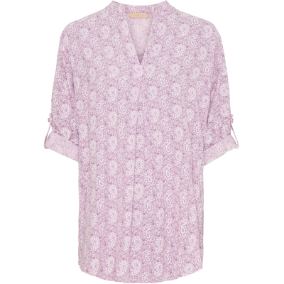 Let og luftig bluse fra Marta. Den kommer med et 3/4 ærme som kan rulles ned til lange ærmer. Blusen har en fin v- udskæring i halsen og er en anelse længere bagtil.