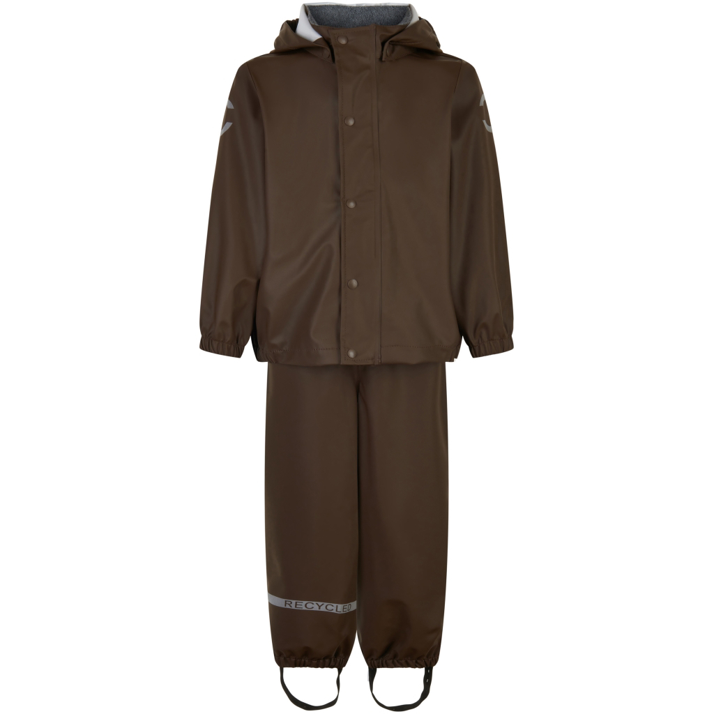 Dette regntøjssæt er lavet af vandtæt stof af genbrugt PU-materiale, og det er designet til, at børn kan have det sjovt i regnen og hoppe i vandpytter.