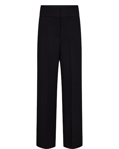 Super lækre habitbukser fra Nümph. Buksen har en højtalje og vidde i benene. De har en bred linning, paspolerede lommer bag på, og skrålommer fortil. Metervaren er en lækker kraftig kvalitet som gør buksen faldder flot.