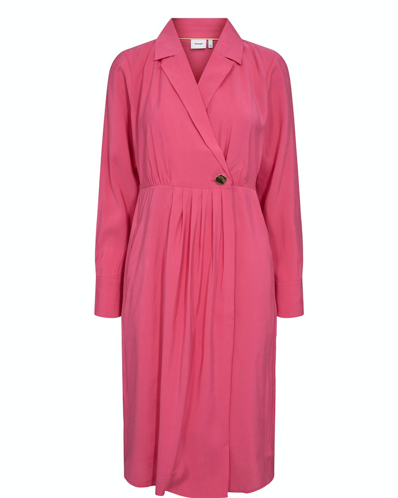 Elegant Cluture kjole med den smukkeste silhuet, som fremhæver taljen. Kjolen er designet som en blazer, så den lukkes foran med tre knapper og har en klassisk blazer krave der går ned i en v-udskæring. Kjolen har længde til lige over knæet.