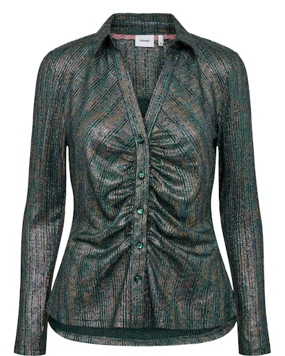 Smuk printet Marta skjorte. Skjorten har en lille v-udskæring, stolpelukning og flæse. Ærmerne er lange med en smal elastikkant . Kan styles til både hverdag og pænere brug.