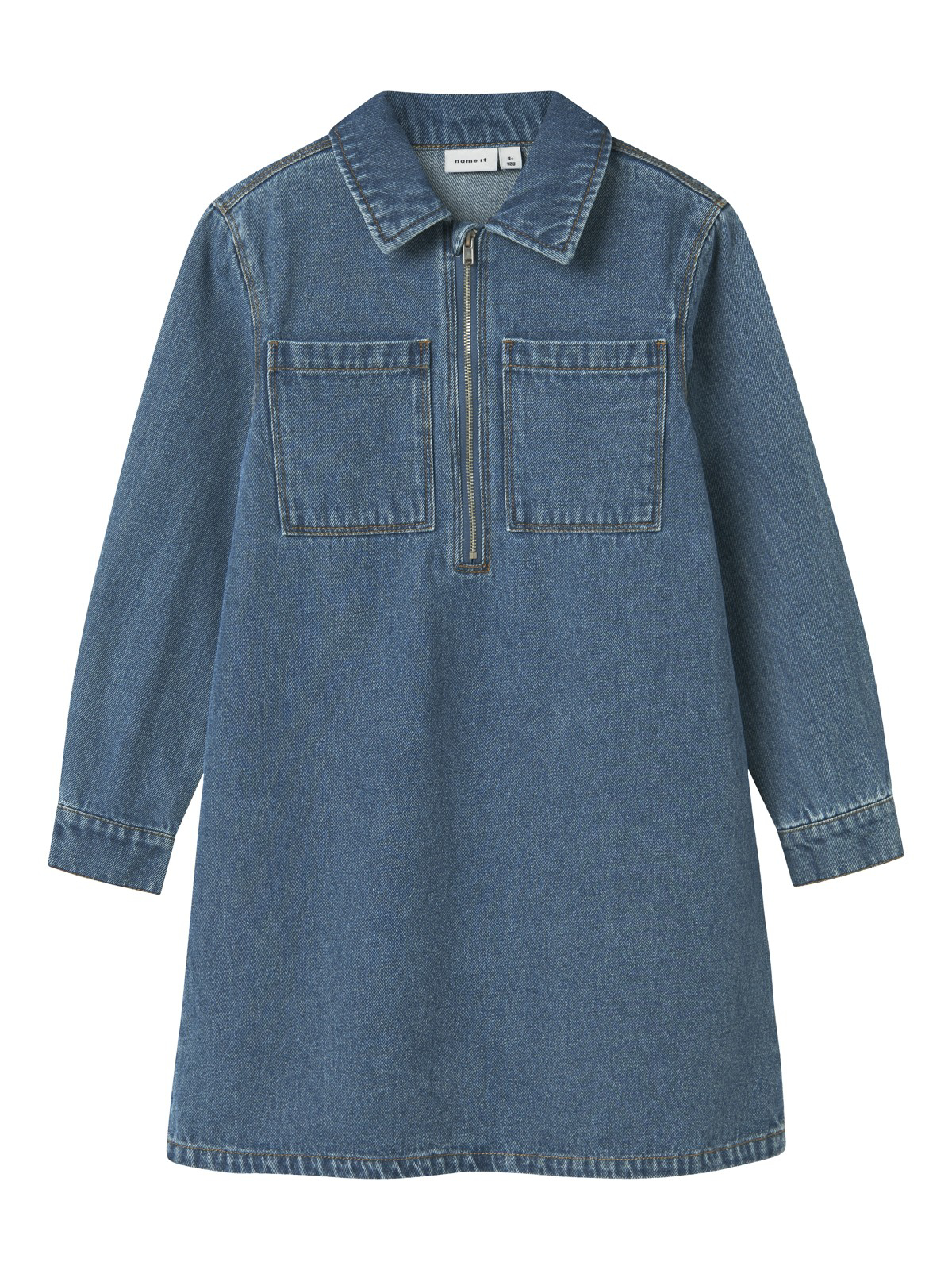 Super smuk kjole fra Name It i beige med fint blomsterprint over det hele. Kjolen har elastiske manchetter, knap og løkkelukning bagpå og er lav i taljen.