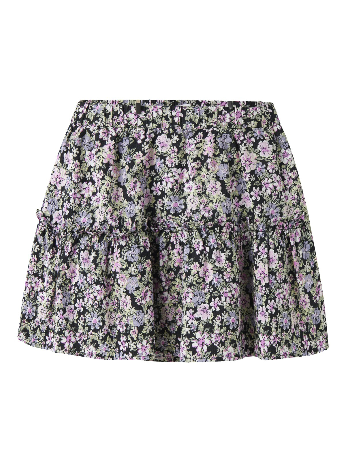 Super smuk kjole fra Name It i beige med fint blomsterprint over det hele. Kjolen har elastiske manchetter, knap og løkkelukning bagpå og er lav i taljen.