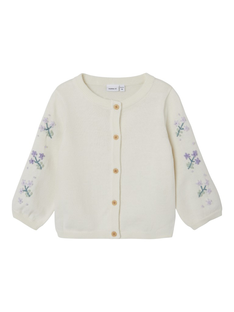Smuk name it cardigan med de fineste broderede blomster ned af ærmet. Style cardiganen over en sød kjole til sommer.