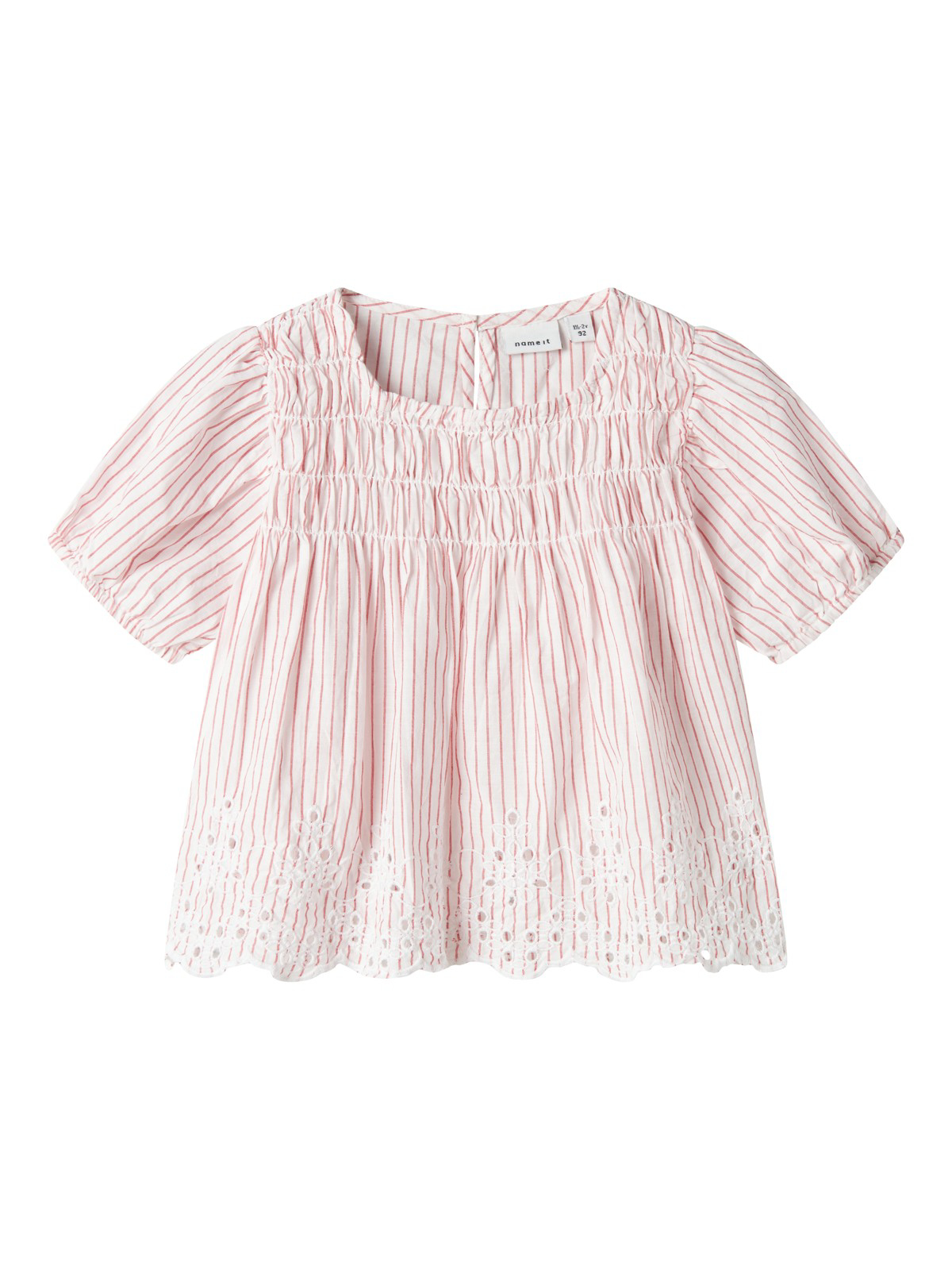 De sødeste Salli shorts fra Name It. Shortsene har trykknaplukning og halv, falsk gylp. Modellen er slim fit og du kan dertil justere elastikket i taljen efter behov.