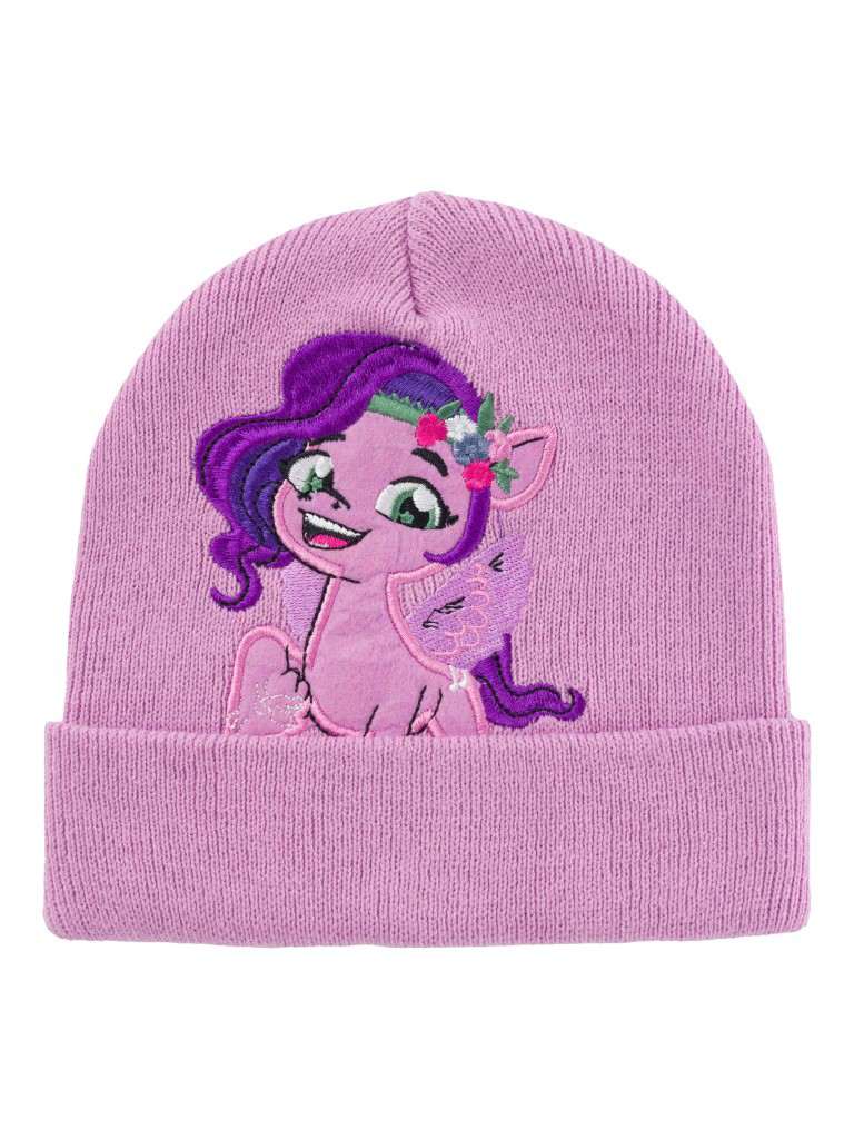 Sød Hummel nissehue med glitter. Den er i en rød strikkvalitet med en kvast i spidsen. Huen har en lang, spids hovedform, og åbningen har et fint ombuk. Nissehuen er lavet i en blød og strækbar strikkvalitet.