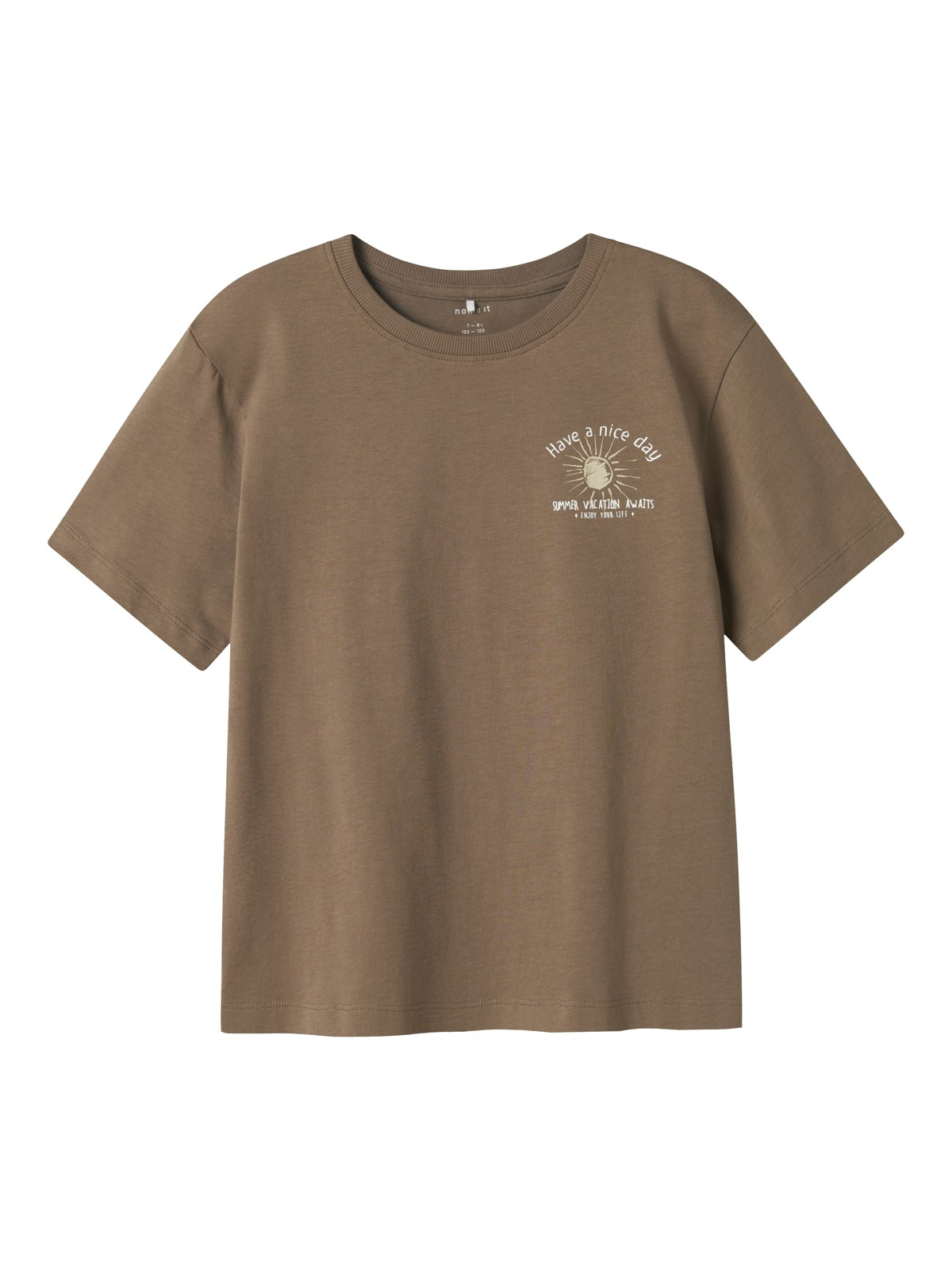 Super fin Hummel T-shirt til dreng i hvid med forskellige farver Hummel logo print over det hele. Den har korte ærmer og rib O-hals. Style den med et par fede jeans til.