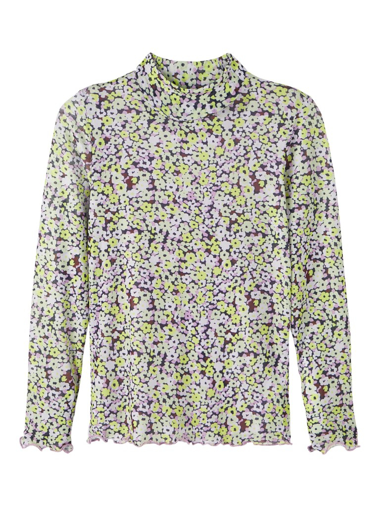 Sammensæt det perfekte outfit til dit barn med hverdagsstyles i høj kvalitet og skønne designs. Mesh er en let kvalitet med en netlignende struktur og tekstur i overfladen. Her er det en super fin top med høj hals og blomsterprint på hele produktet.
