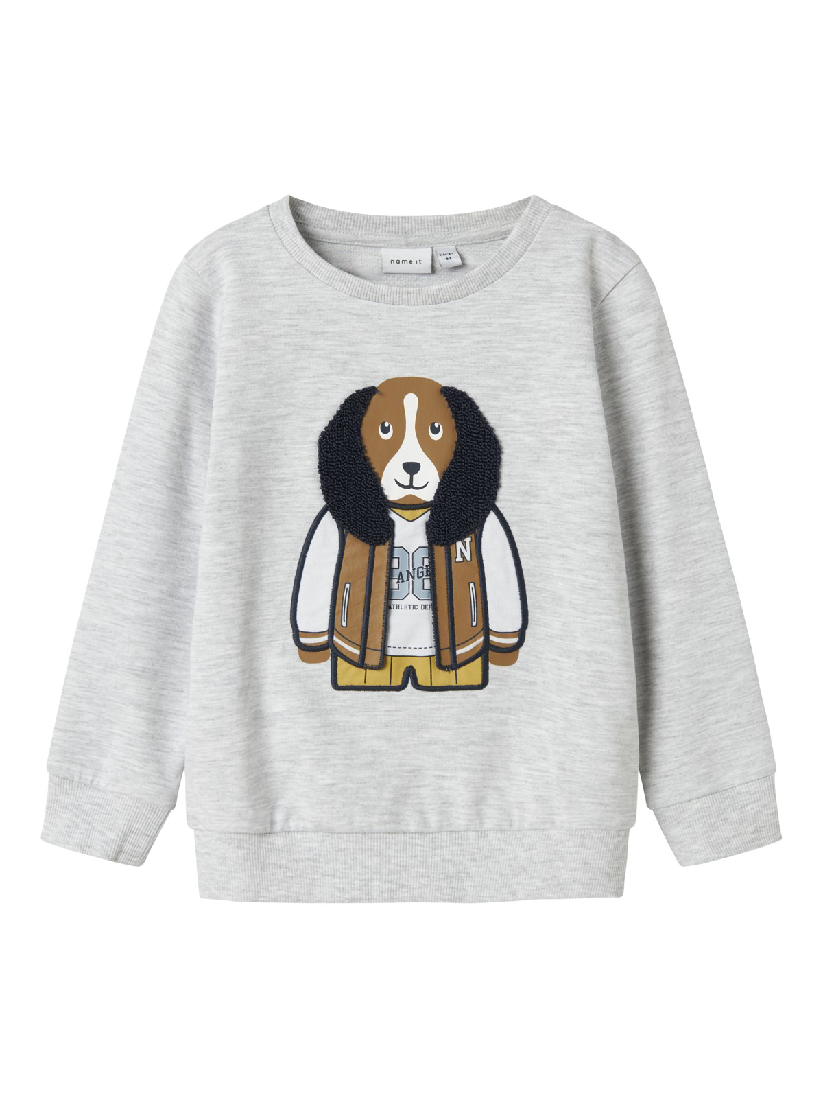 Lækker Hummel body til dreng. Den er i lysgrå med mørkblå og hvide nuancer på front. Den har lange ærmer, O-hals og praktiske trykknapper på den ene side og ved gylp.