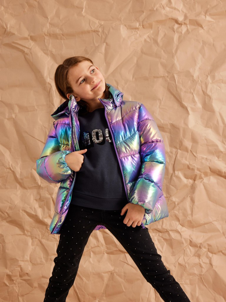 Smart dynejakke fra name it i nogle skønne regnbuefarver. Denne jakke har: * Aftagelig hætte * Lynlåslukning * Forlommer * Fleecefor i frakken og hætten * Høj isolering * Dekorative reflekterende detaljer