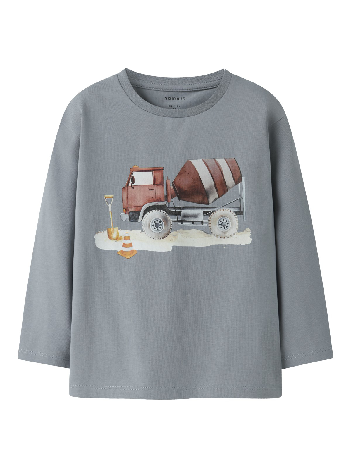 Lækker Hummel body til dreng. Den er i lysgrå med mørkblå og hvide nuancer på front. Den har lange ærmer, O-hals og praktiske trykknapper på den ene side og ved gylp.