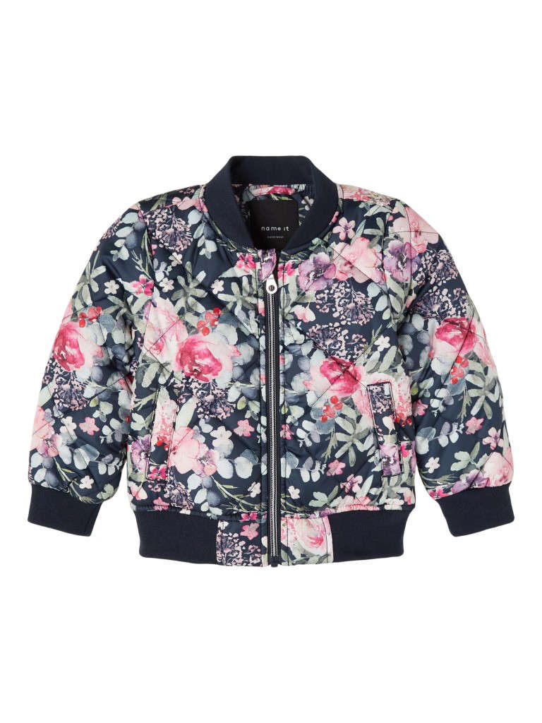 Virkelig smuk jakke fra name it med blomster print. Jakken har aftagelig hætte af sikkerhedsmæssige årsager og refleks detalje bagpå.