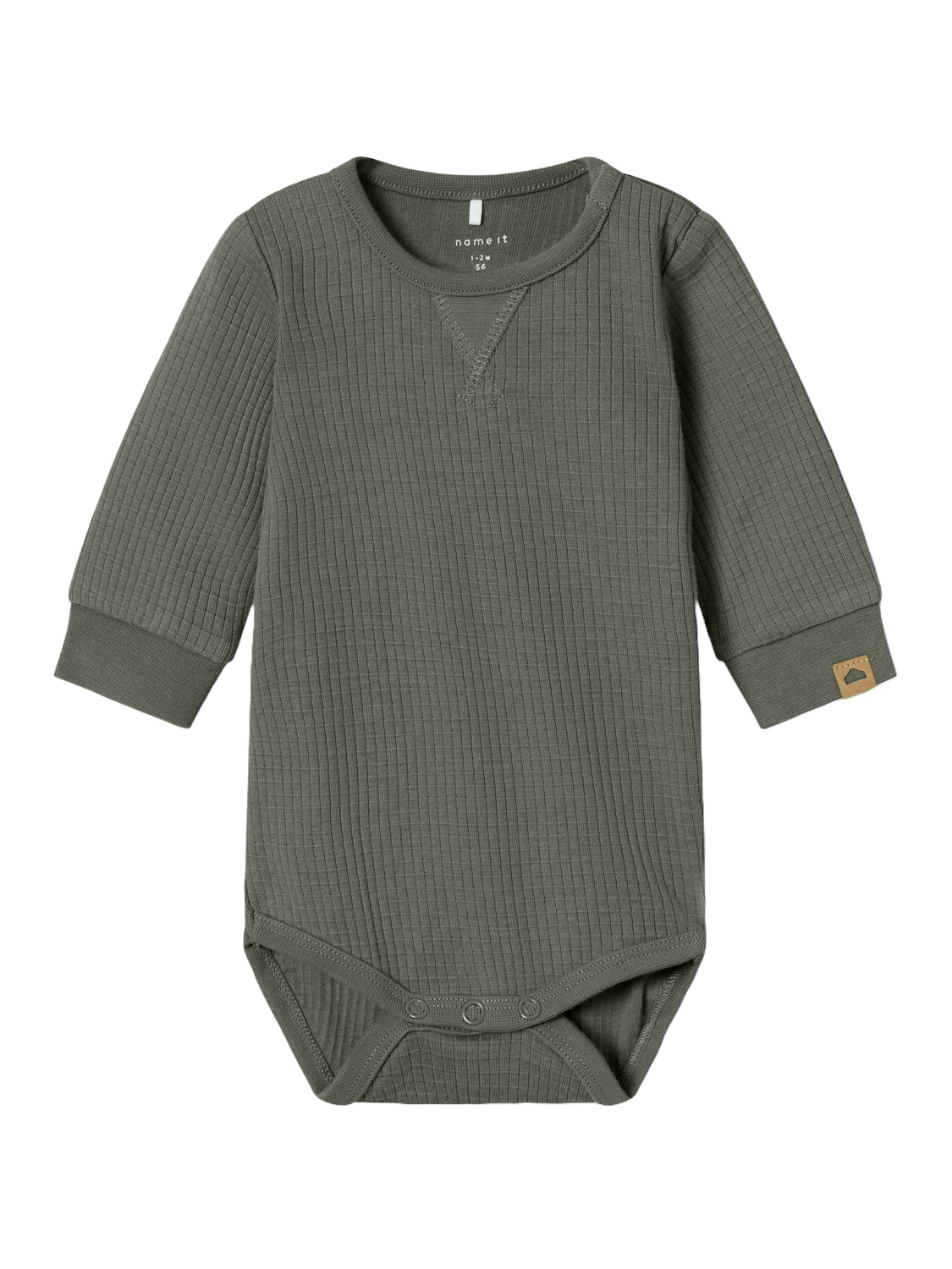 Blød body fra name it med O-hals og lange ærmer. Bodyen lukkes med trykknaplukning.