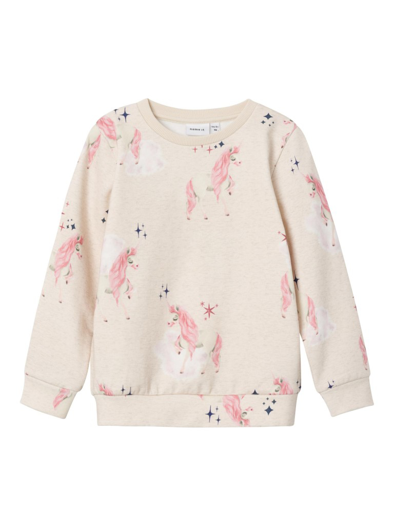 Super sød sweatshirt fra name it med enhjørning print. Denne sweatshirt er med O-hals og lange ærmer.