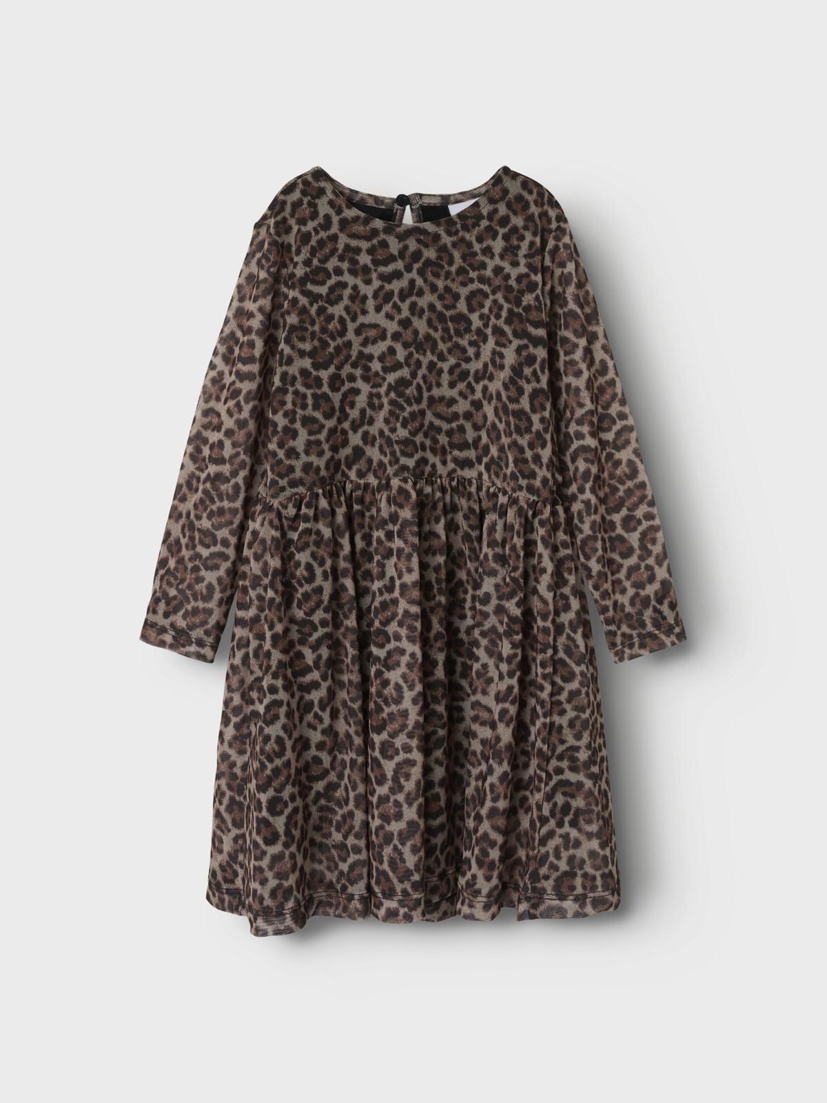 Skønneste Leo kjole med O-hals og lange ærmer. Leo printet på hele produktets overflade. Kjolen er i regular fit i pasform.