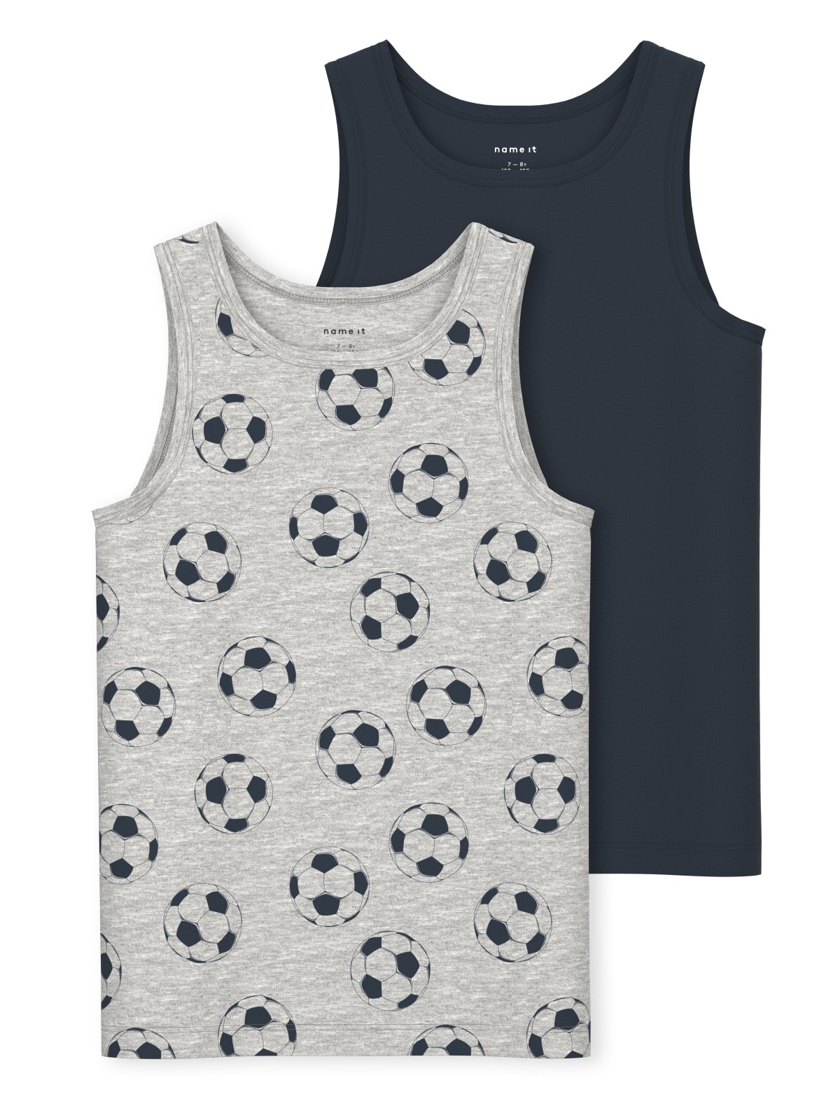 Forny dit barns basisgarderobe med blødt og komfortabelt undertøj til enhver alder. Super fint 2 pk tanktop til dreng. Den ene med dino print, den anden ensfarvet.
