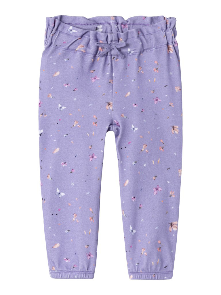 Søde Hummel sweatpants til pige i en lys lavendel med glimmer. Bukserne har snørre i livet samt elastik ved benet. Guld logo på front.