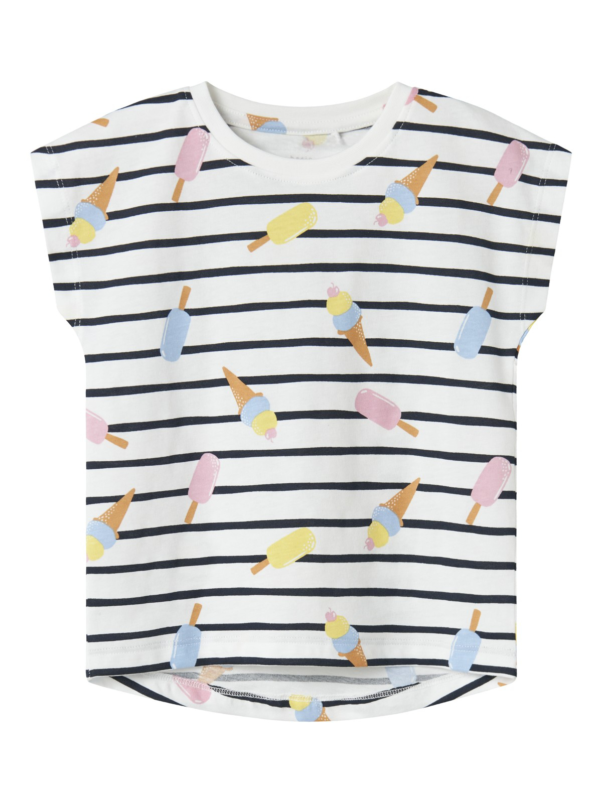 Sød Hummel Body fra Hummel til pige i råhvid med små Hummel logoer i forskellige farver over det hele. Den har praktiske trykknapper ved skulder og gylp.