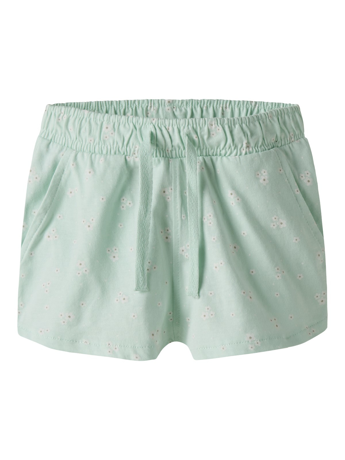 De sødeste Salli shorts fra Name It. Shortsene har trykknaplukning og halv, falsk gylp. Modellen er slim fit og du kan dertil justere elastikket i taljen efter behov.